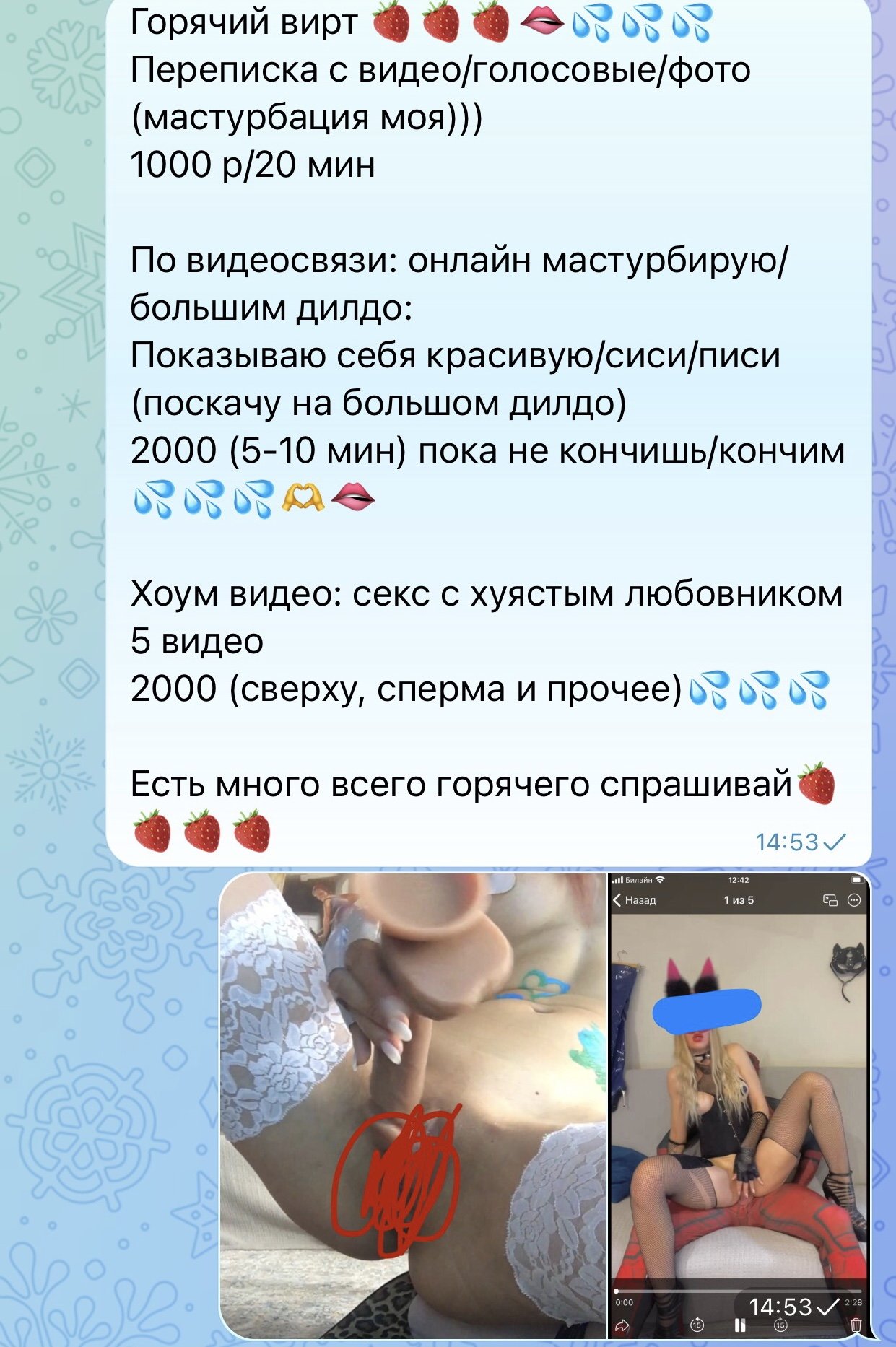 Я твоя красивая жена:шлюха! Повиртуалю с тобой! Одену короткую юбку - пойду в бар а дальше…. Рассказ о моих приключениях (платно)- видеозвонок и расскажу как и с кем ебалась; ) видео/фото! Добавлю в мою группу- рабы /куколды!(вход платный) пиши мне быстрее- мой муж рогоносец! Именно пиши! На звонки не отвечаю- так как рот занят !